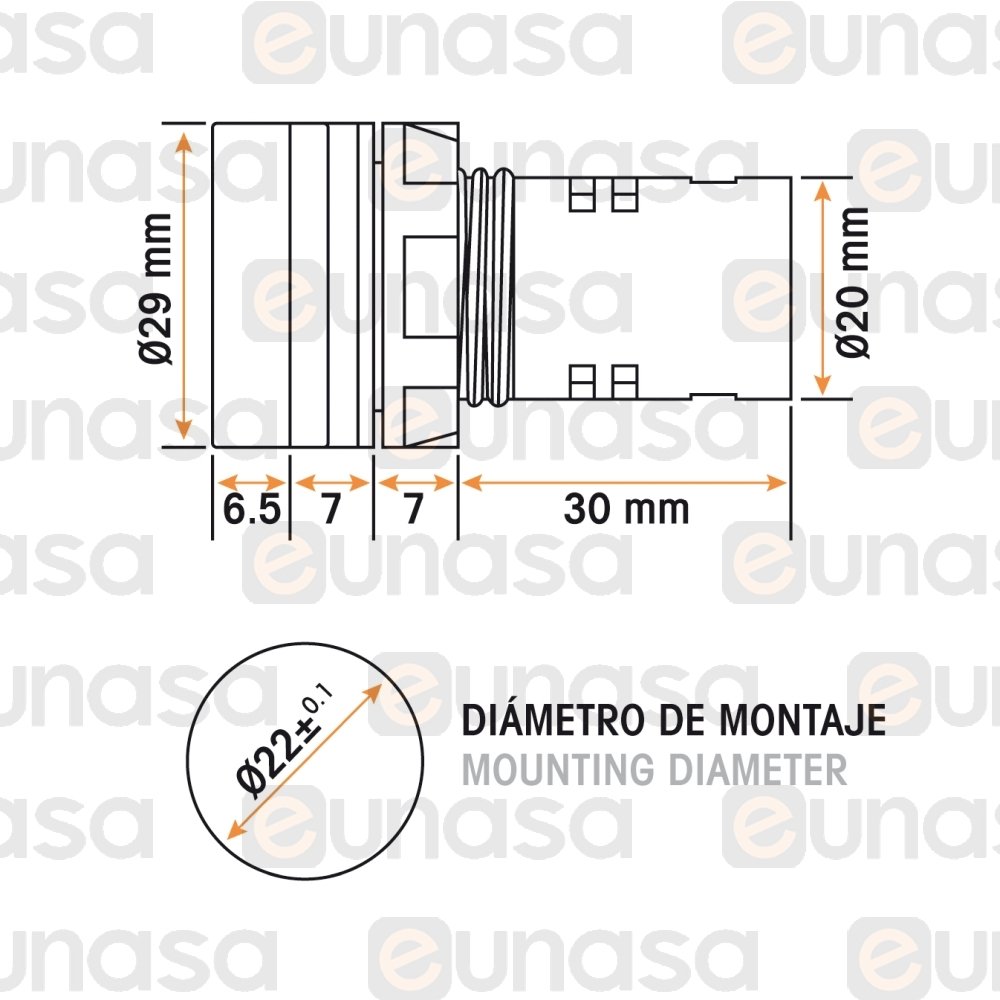 115988 - Led Pilot Ø20mm 230V Ac Ambar